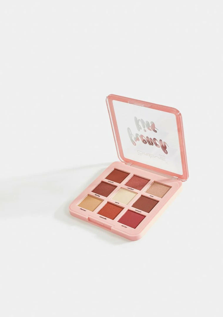 contains 9 monochromatic pink shades in matte, shimmer, and glitter finishes.
