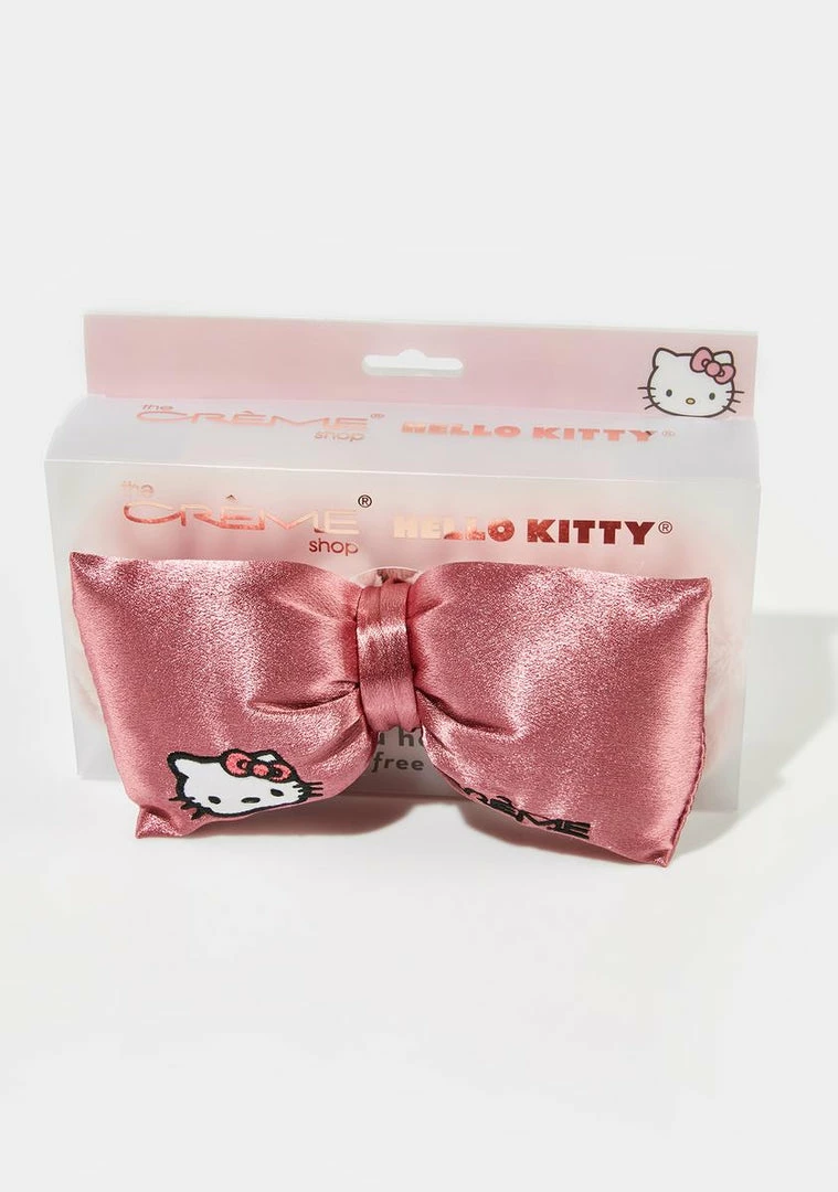 has a plush elastic band with a decorative satin bow and embroidered Hello Kitty details.